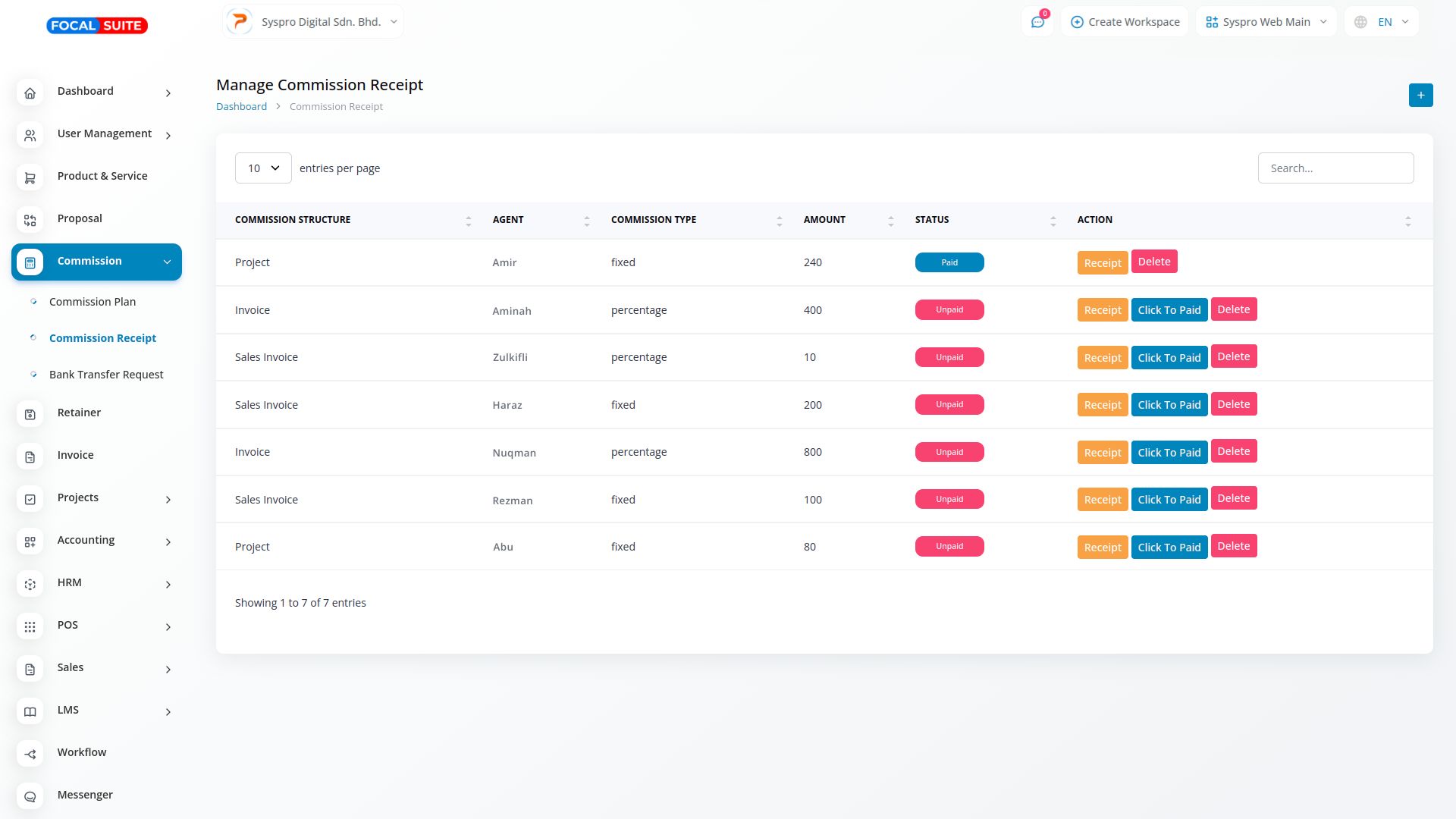 In the Commission Module, commission calculation is linked to invoices, sales invoices, projects, and tasks. An agent earns their commission once the payment is made, typically through a bank transfer. When the payment is processed, the bank transfer entry is recorded in the commission module, ensuring that the system tracks how much commission has been paid to the agent. This allows for accurate and transparent commission management based on actual payments received.