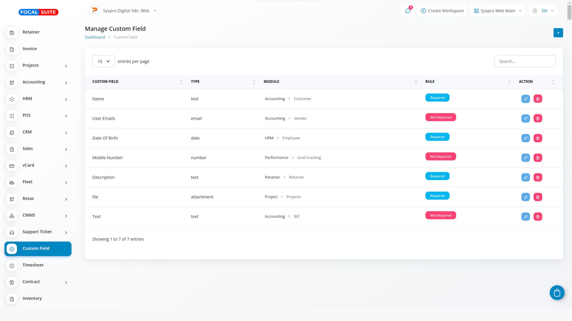 Custom fields can be used across various modules, including HRM, Accounts, Leads, Assets, Contracts, Performance, POS, Retainer, Sales, and Taskly. With custom fields, you can collect additional information for any module as needed.